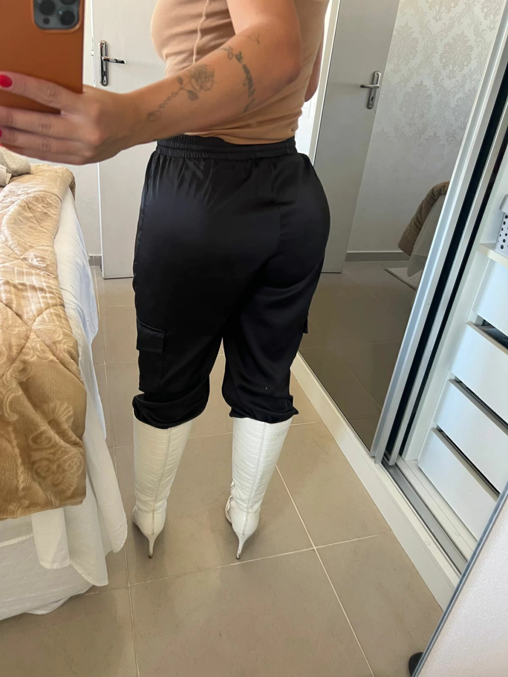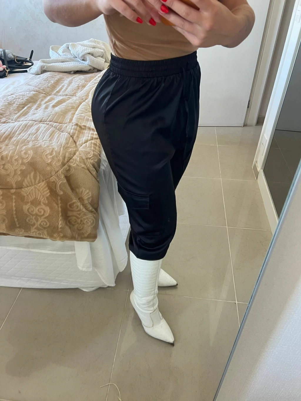 Peça de roupa usada, selecionada com cuidado para o bazar. Pode apresentar sinais de uso, como leves desgastes, pequenos fios puxados ou outras marcas do tempo, o que não compromete sua usabilidade. Ideal para quem busca estilo, economia e consumo consciente.