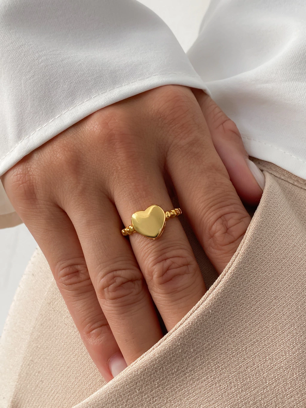 AN91305 - ANEL REGULÁVEL BOLINHA CORAÇÃO CHEIO - ZAMAC - LINHA PREMIIUM