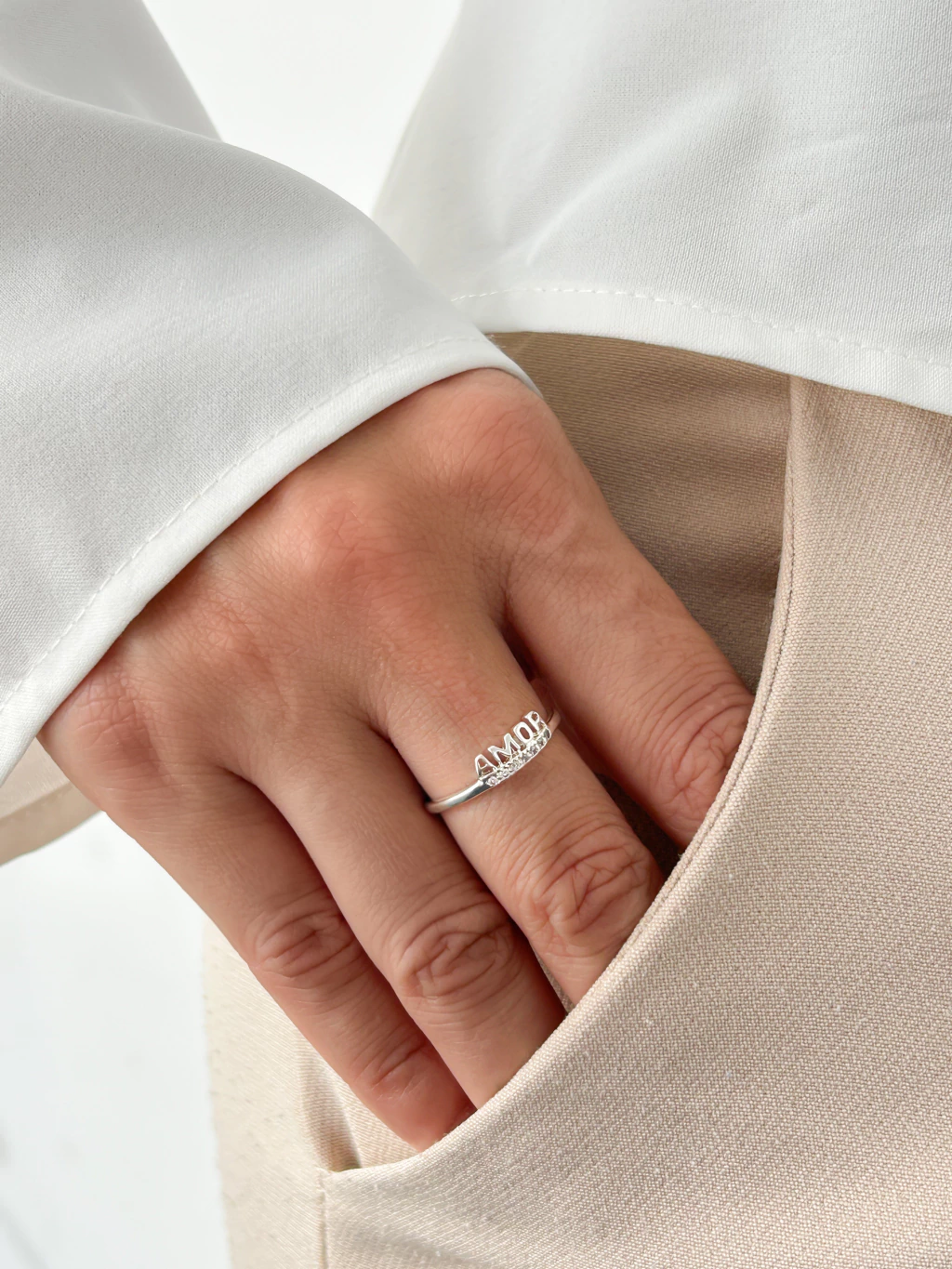 AN91336 - ANEL REGULÁVEL AMOR CRAVEJADO - ZAMAC - LINHA PREMIUM