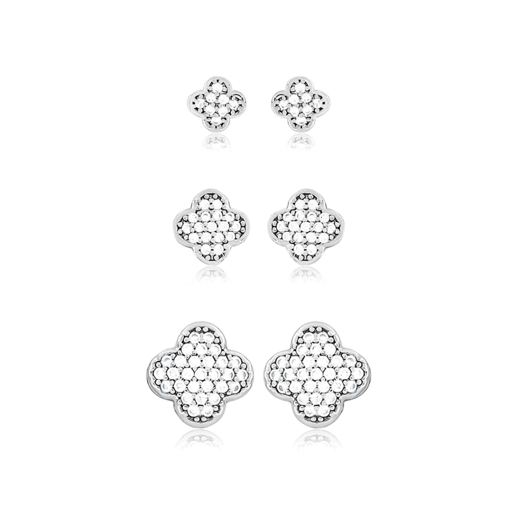 BR91857 - KIT DE BRINCOS INSPIRAÇÃO VG CRAVEJADO - FOLHEADO A PRATA 925