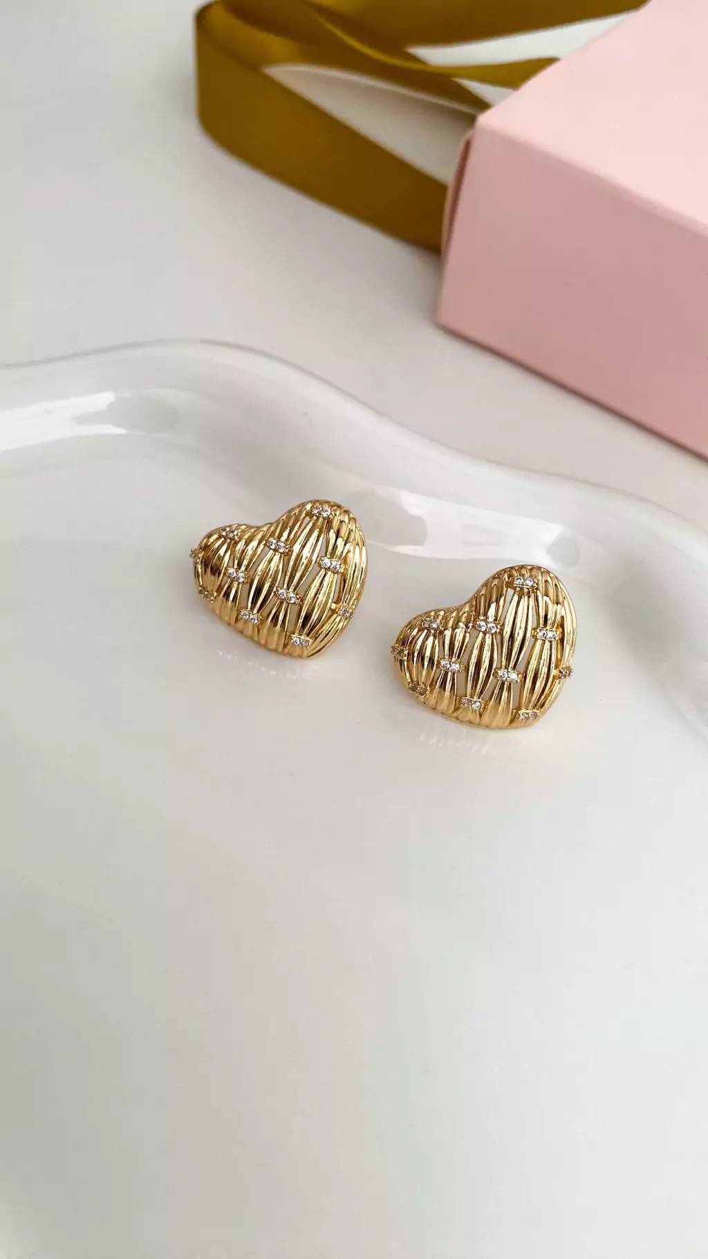 BR91871 - BRINCO CORAÇÃO DETALHADO COM BRILHANTES - FOLHEADO A OURO