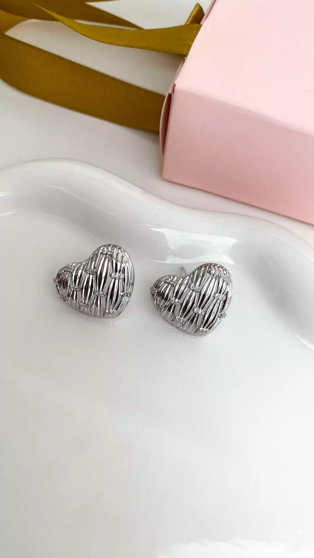 BR91872 - BRINCO CORAÇÃO DETALHADO COM BRILHANTES - FOLHEADO A PRATA 925