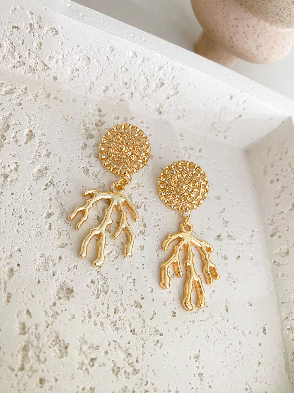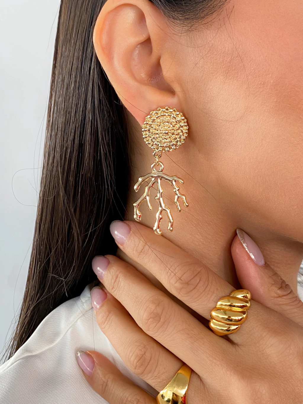 BR91908 - BRINCO MEDALHA COM GALHOS - FOLHEADO A OURO