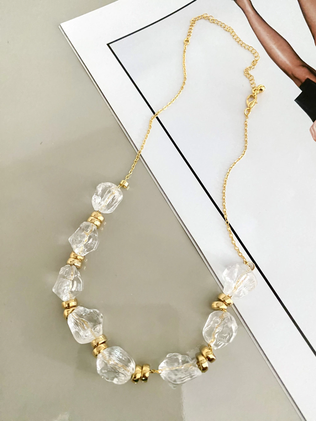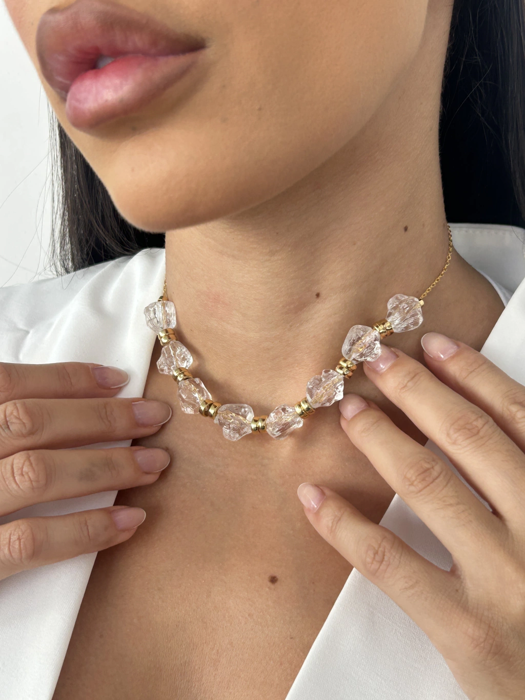 CH9456 - CHOKER ACRÍLICOS EM FORMATO DE PEDRA DETALHADOS - FOLHEADO A OURO