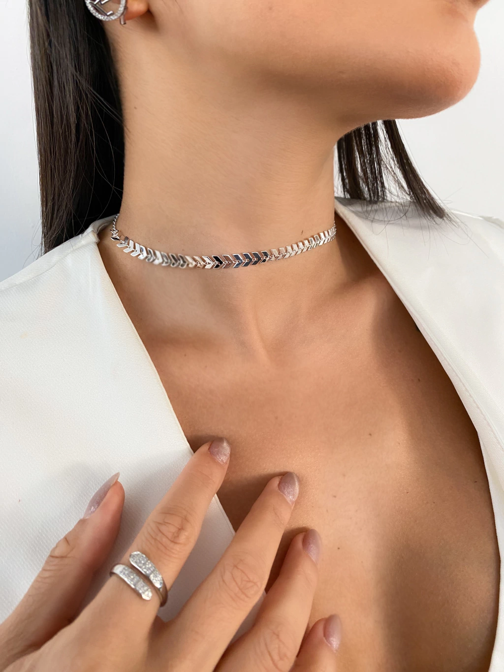 CH9464 - CHOKER ESCAMAS - FOLHEADO A PRATA 925