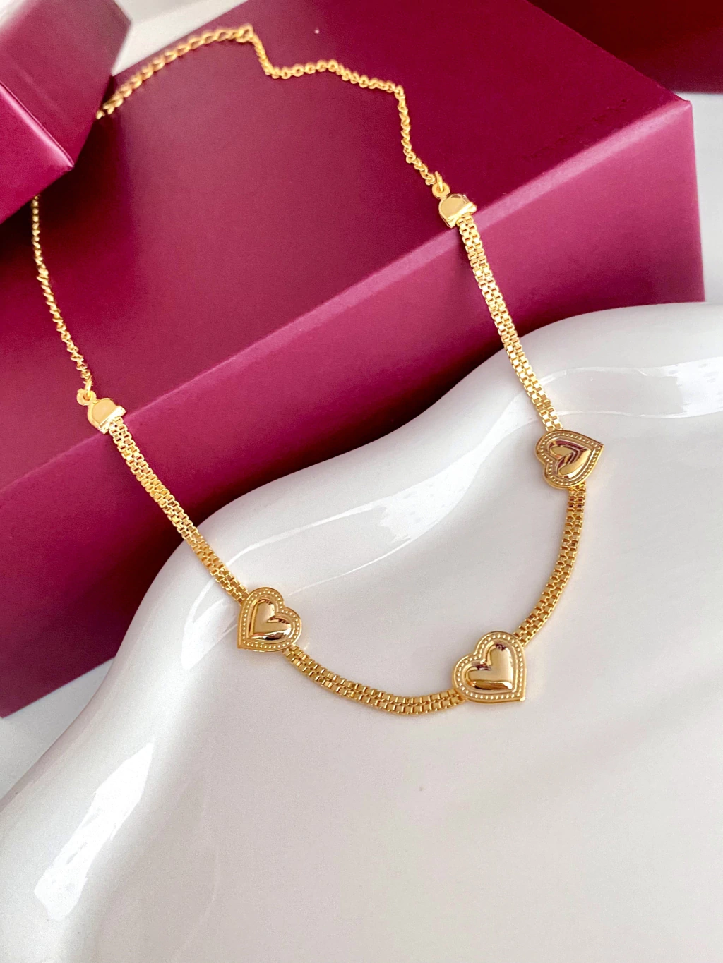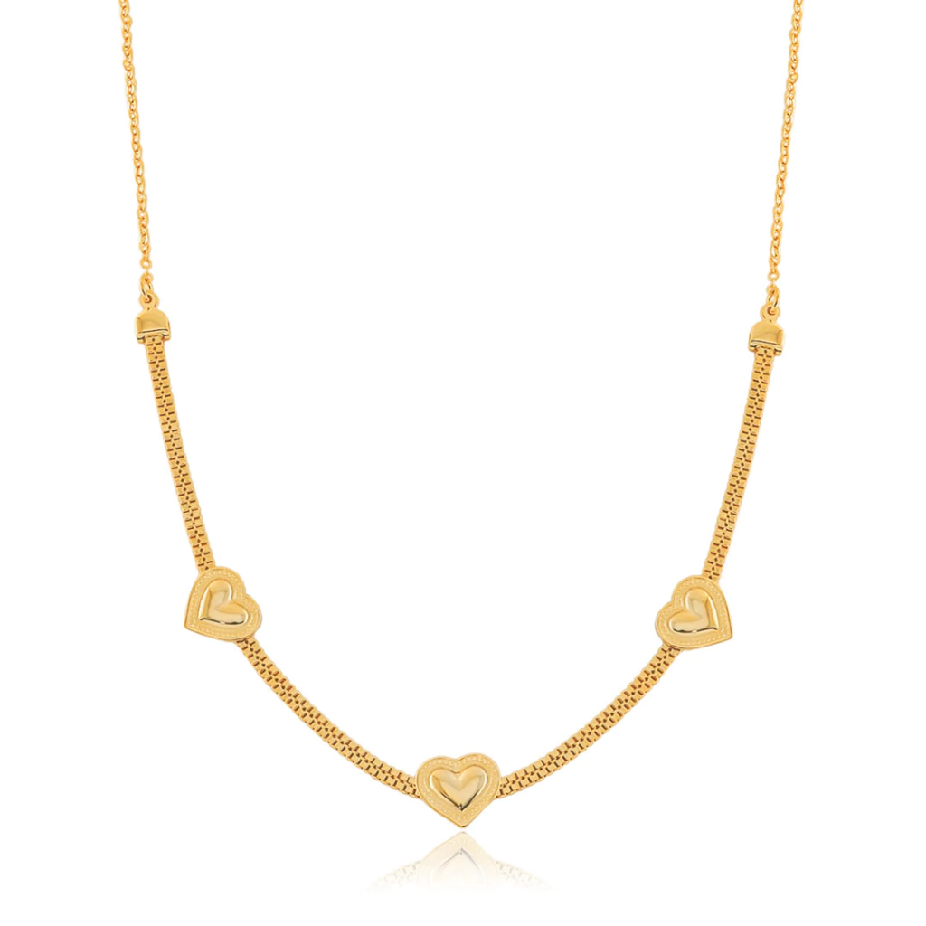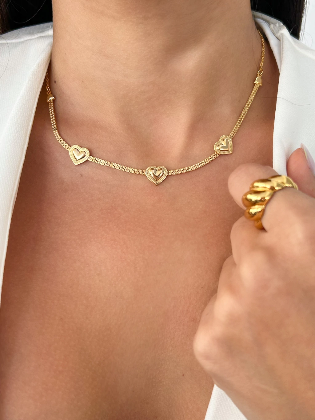 CH9530 - CHOKER 3 CORAÇÕES - FOLHEADO A OURO
