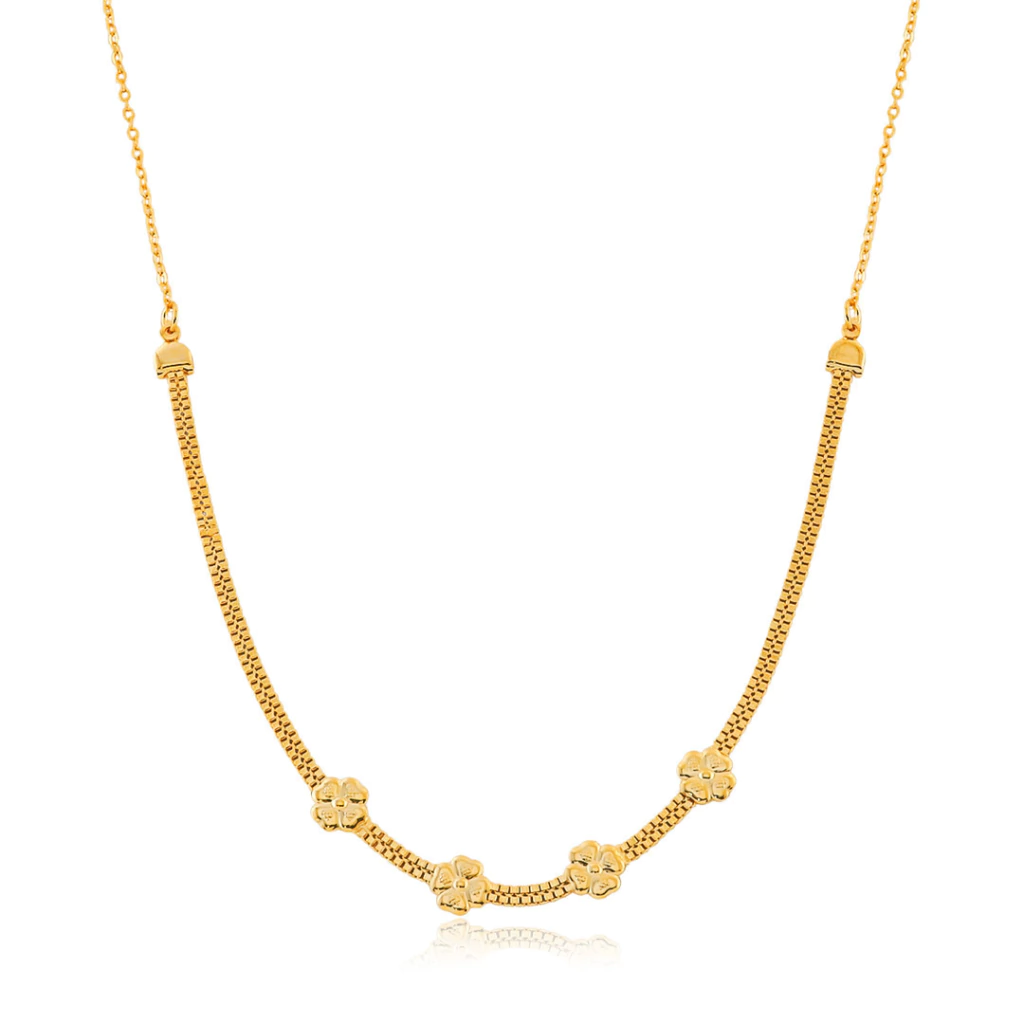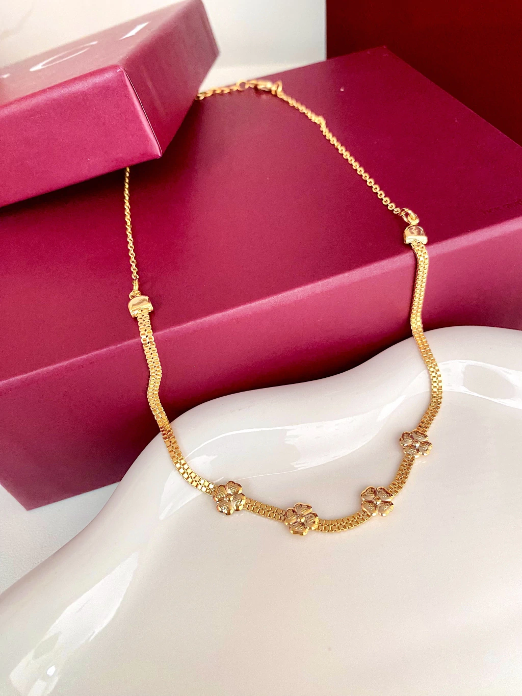CH9544 - CHOKER 3 FLORZINHAS - FOLHEADO A OURO
