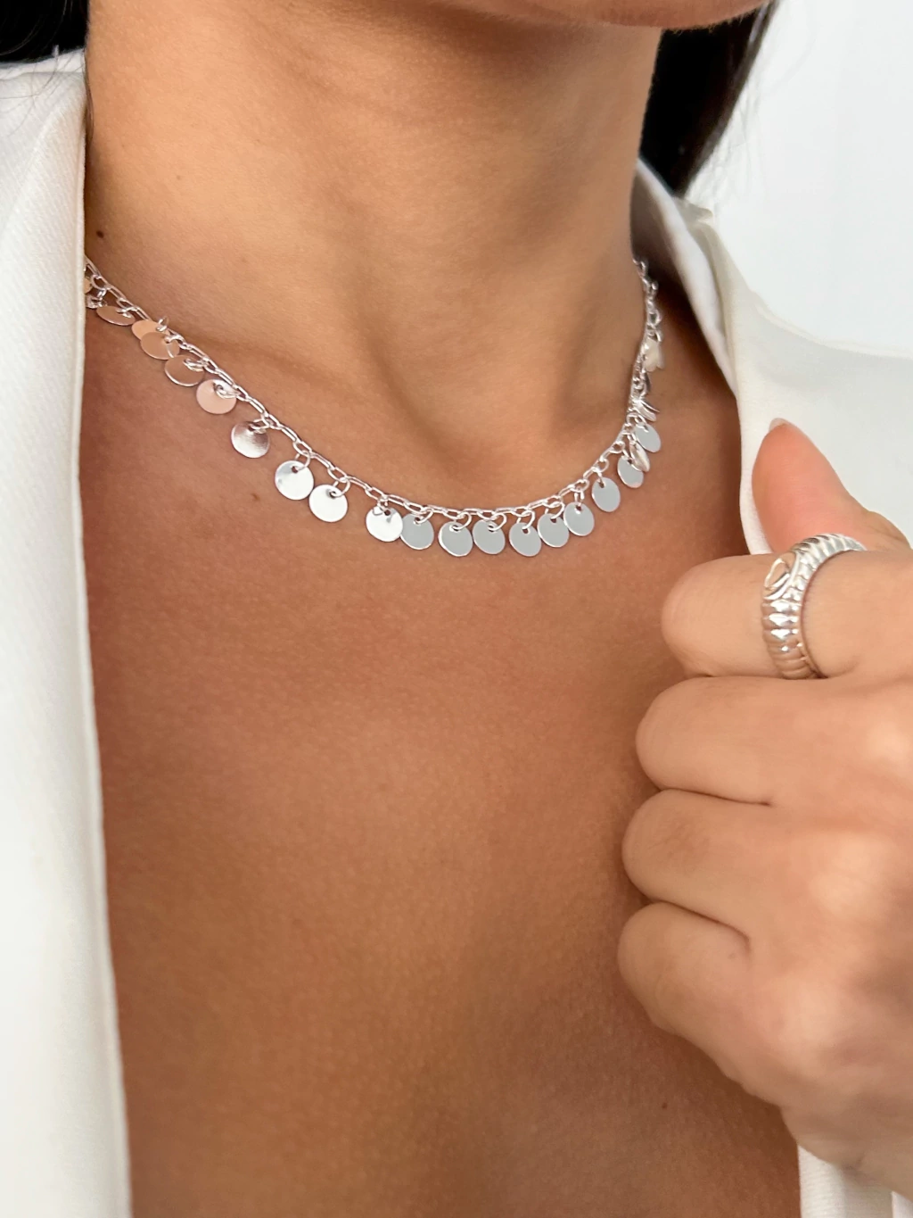 CH9553 - CHOKER COM CIRCULOS LISOS - FOLHEADO A PRATA 925