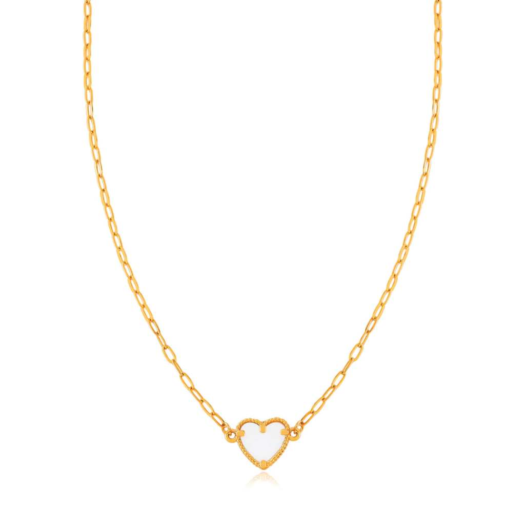 CO91123 - COLAR ELO CADEADO CORAÇÃO ESMALTADO BRANCO - FOLHEADO A OURO