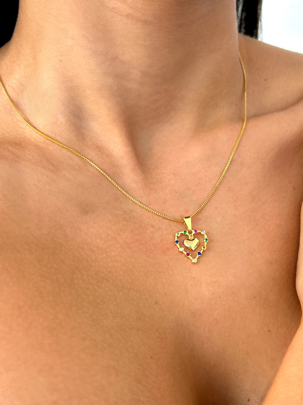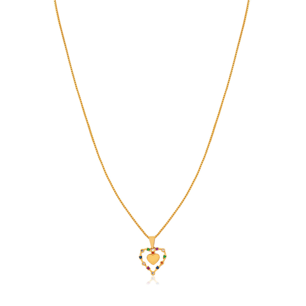 CO91147 - COLAR VENEZIANA CORAÇÃO COLORIDO - FOLHEADO A OURO