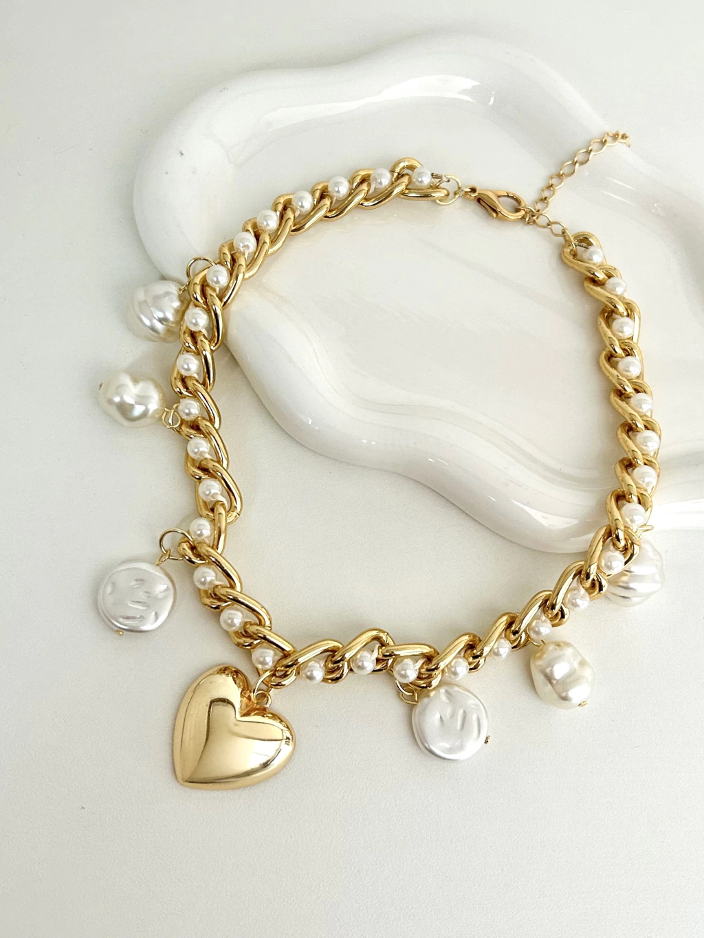 CO91175 - COLAR GRUMET CORAÇÃO CHEIO COM PÉROLAS - FOLHEADO A OURO