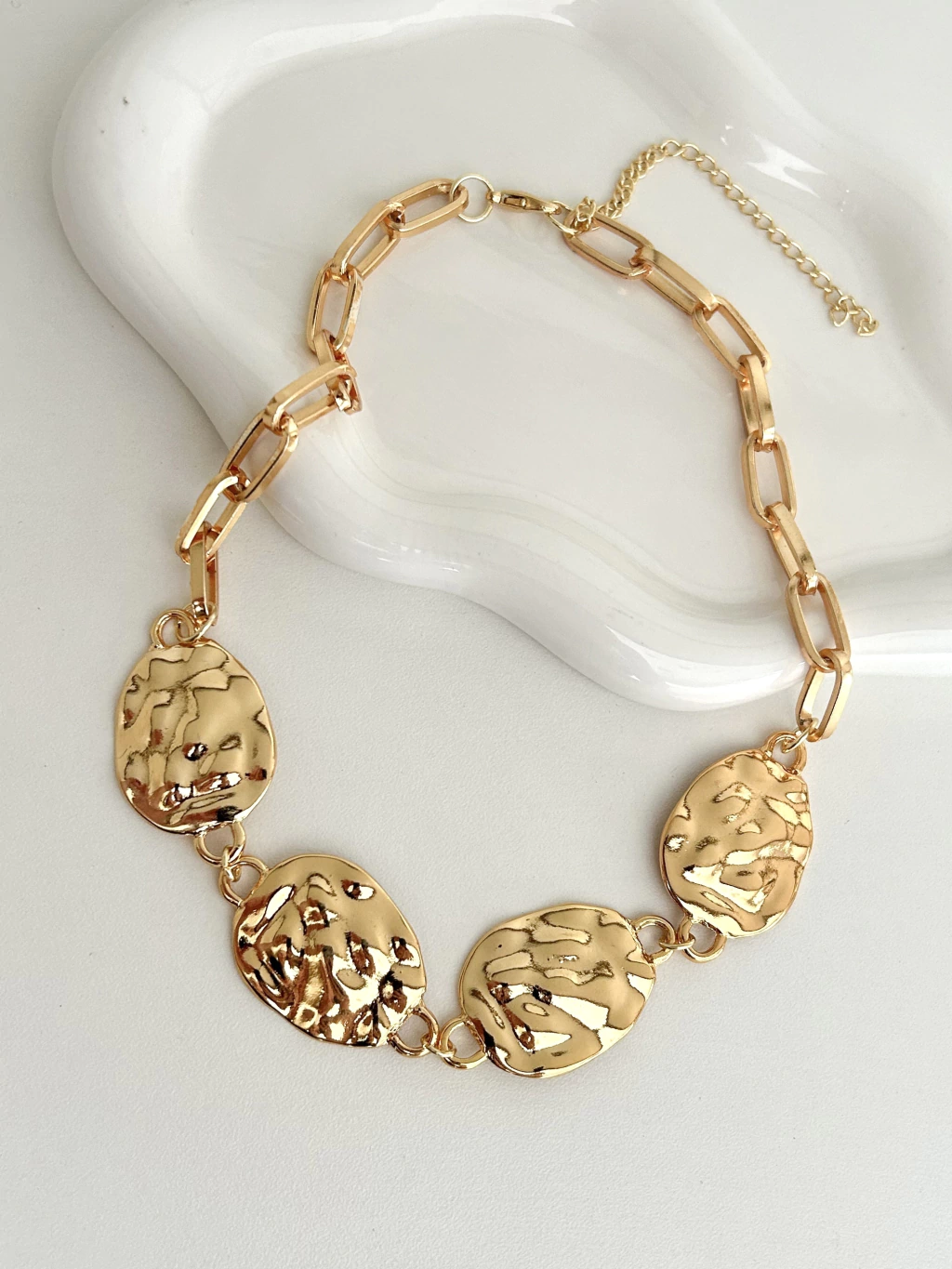 CO91176 - COLAR ELOS CADEADO MEDALHA MARTELADA - FOLHEADO A OURO