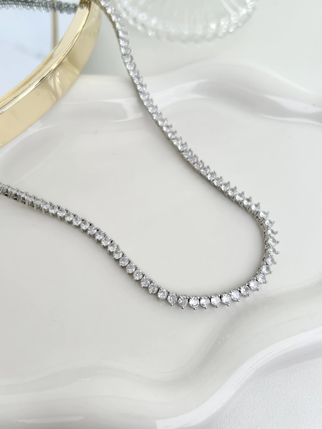 CO91204 - COLAR RIVIERA ZIRCÔNIAS CRISTIAS - FOLHEADO A PRATA 925