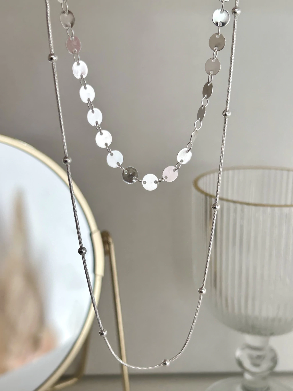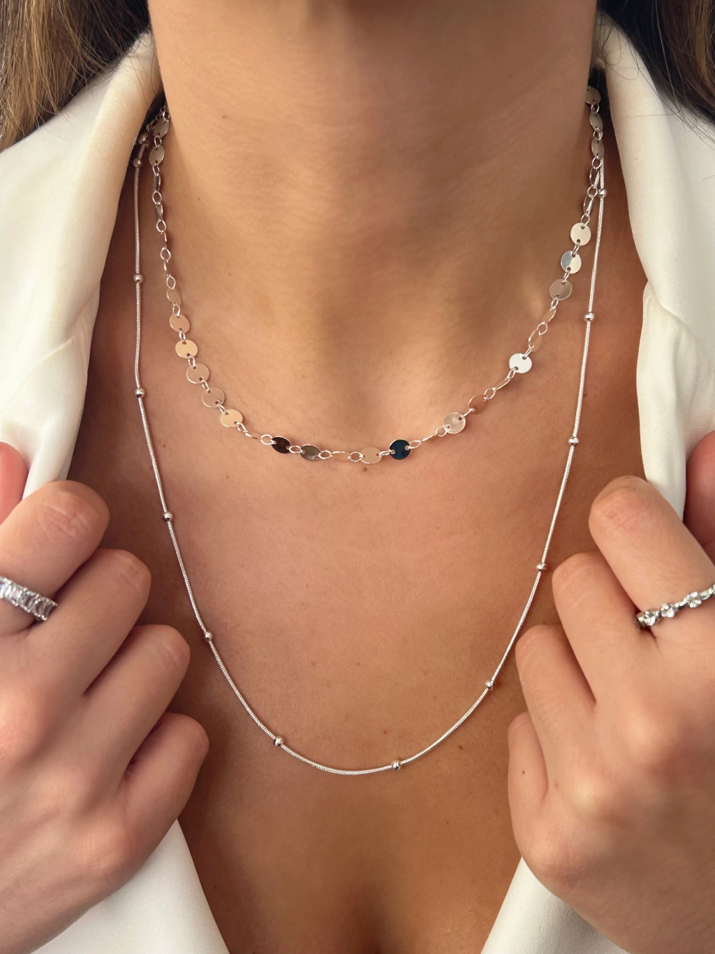 CO91215 - COLAR DUPLO BOLINHAS - FOLHEADO A PRATA 925