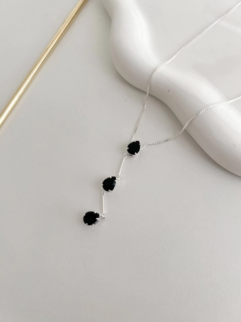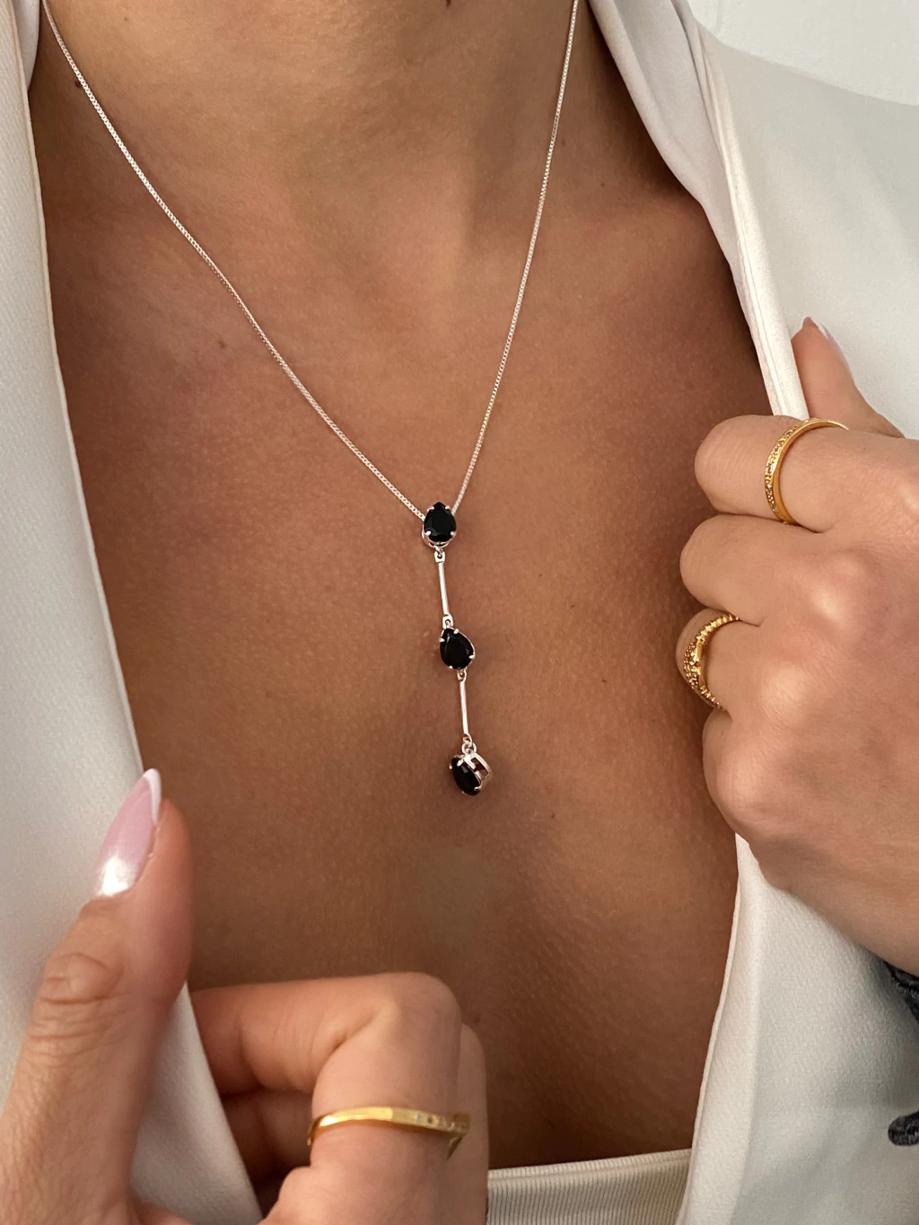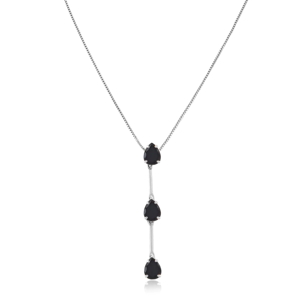 CO91220 - COLAR VENEZIANA GRAVATINHA GOTA ZIRCÔNIA PRETO - FOLHEADO A PRATA