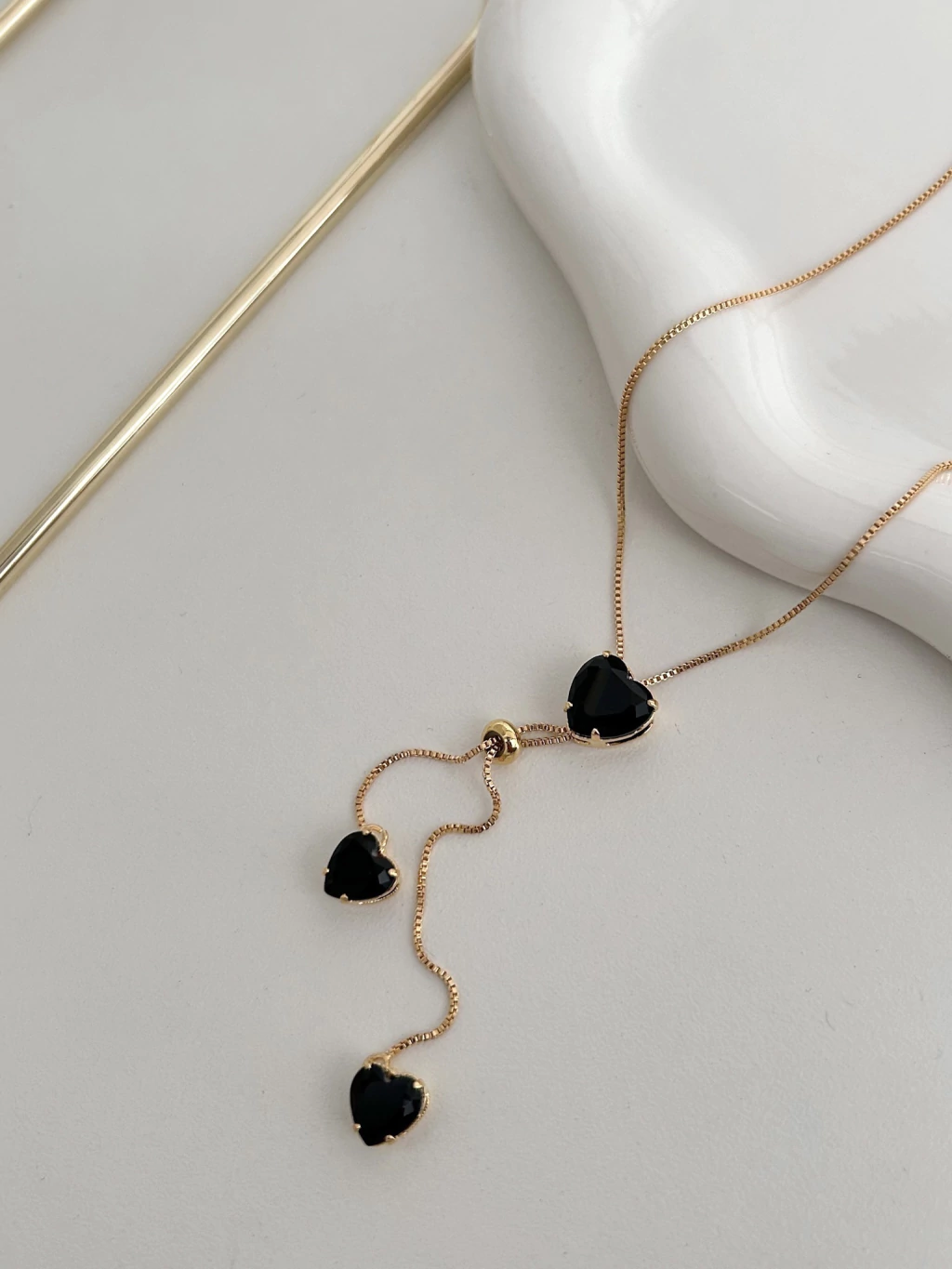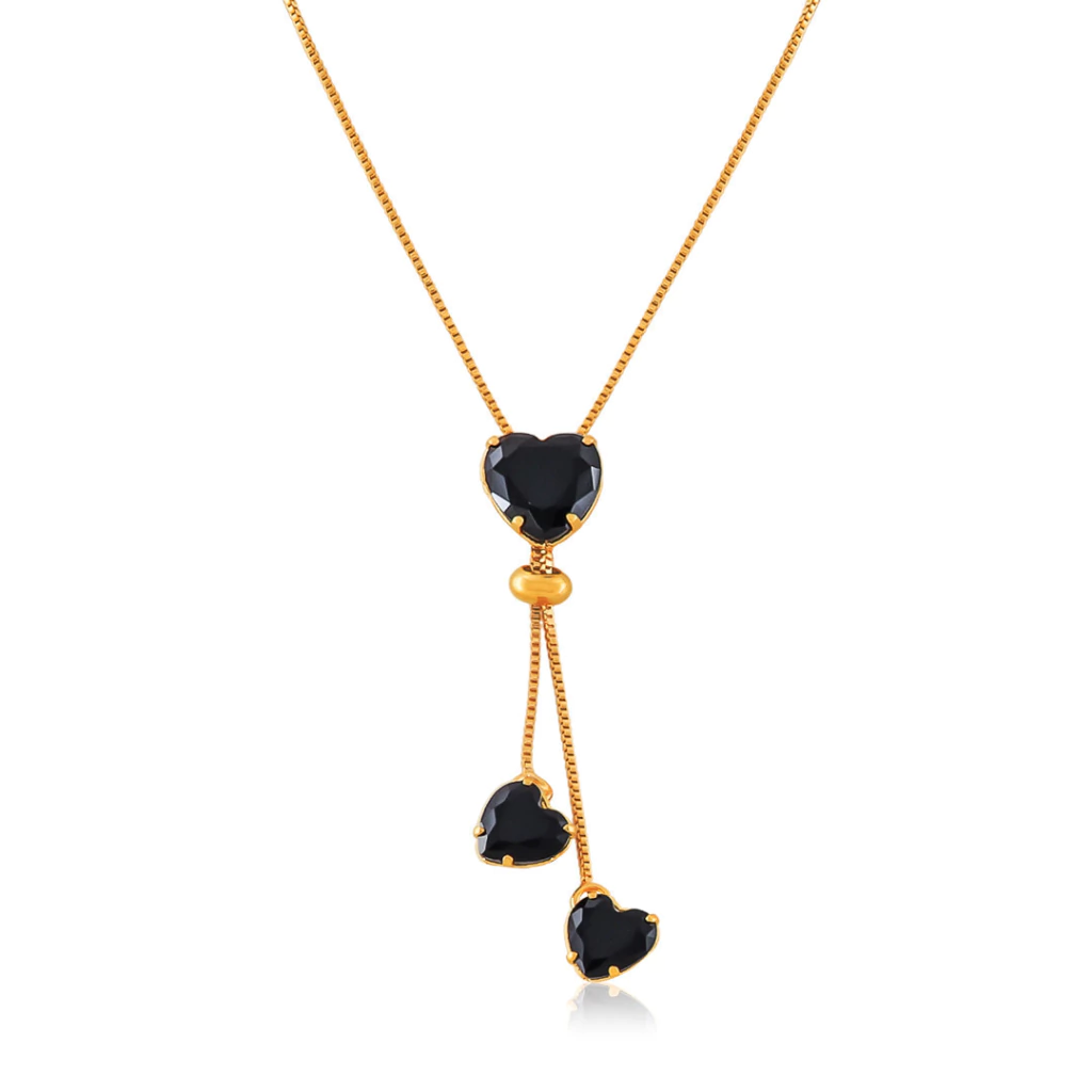 CO91227 - COLAR CORAÇÃO GRAVATINHA ZIRCÔNIA PRETO - FOLHEADO A OURO
