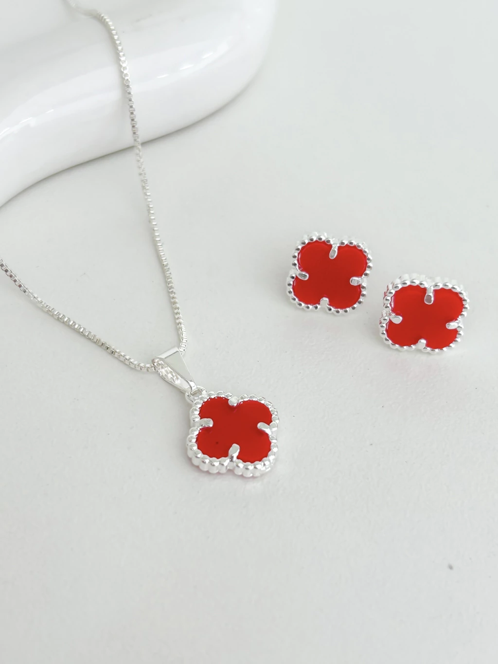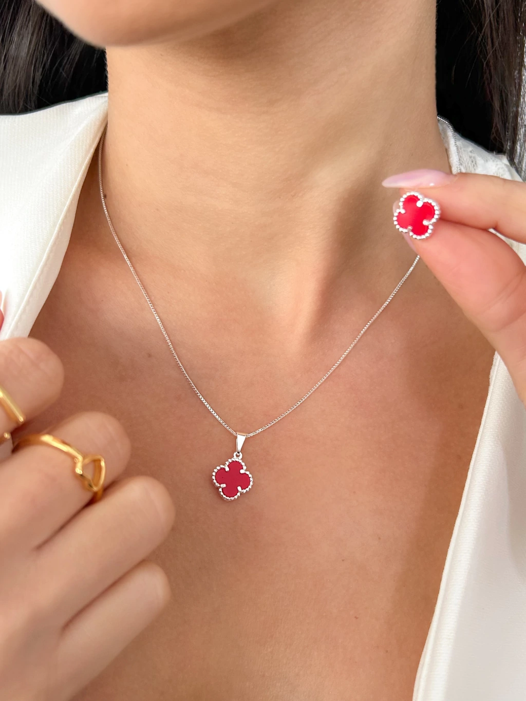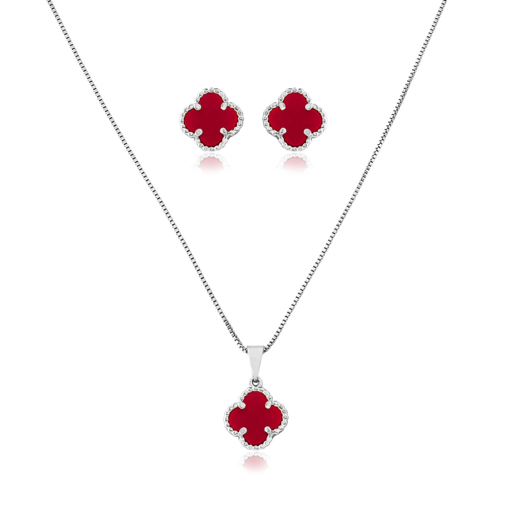 CONJ9458 - CONJUNTO COLAR + BRINCO INSPIRAÇÃO VG VERMELHO - FOLHEADO A PRATA 925