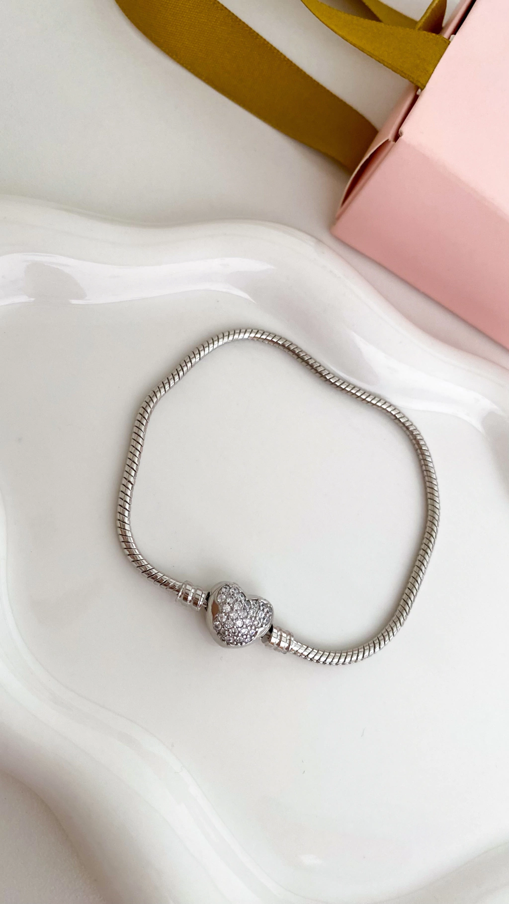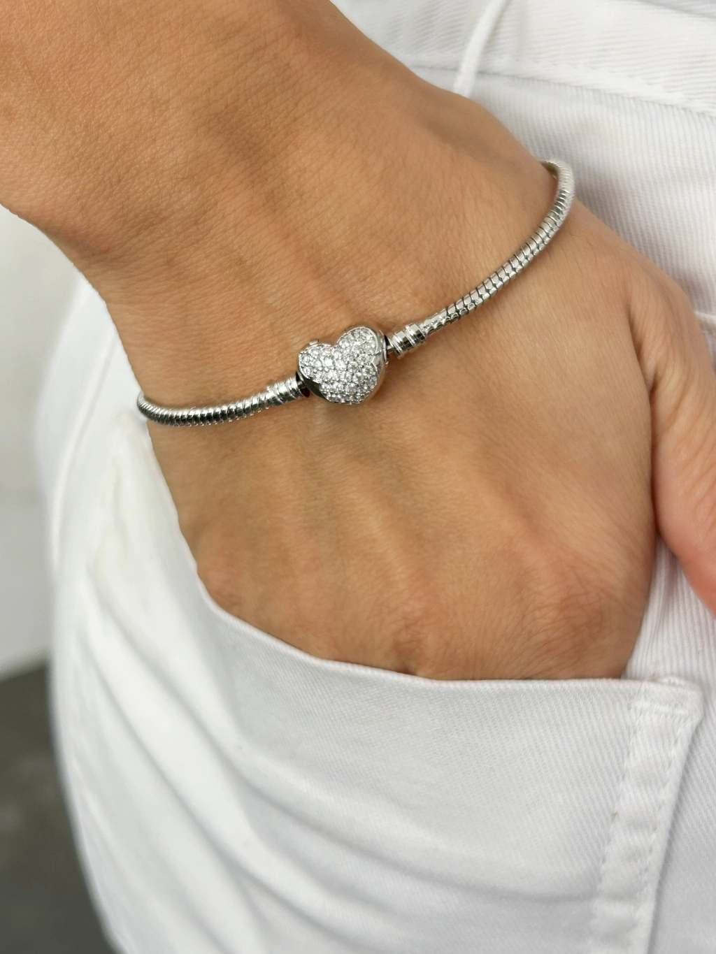PU91235 - PULSEIRA DE BERLOQUE CORAÇÃO CRAVEJADO - FOLHEADO A PRATA 925