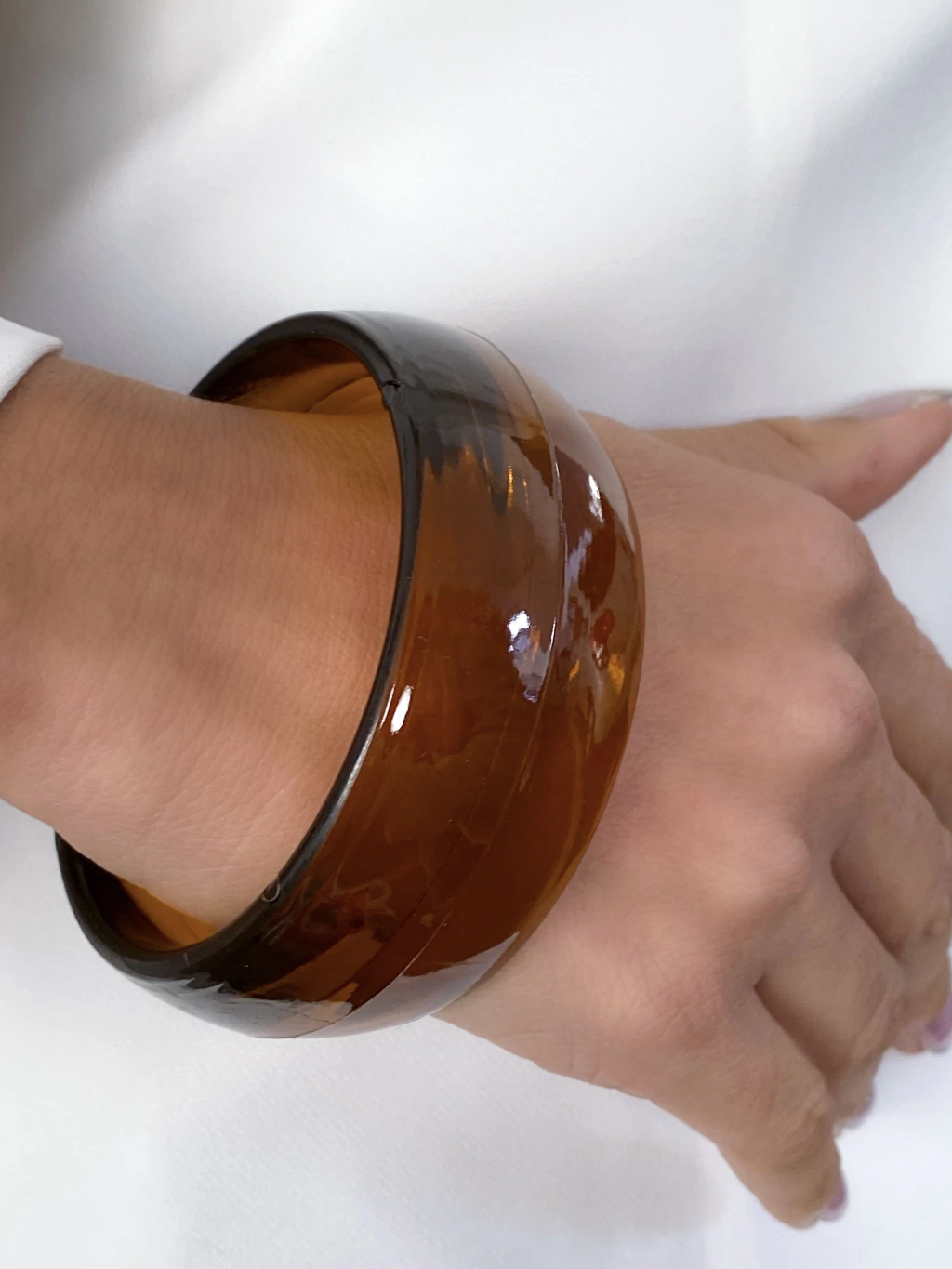 PU91273 - BRACELETE REDONDO GROSSO RESINADO - MARROM MARMORIZADO