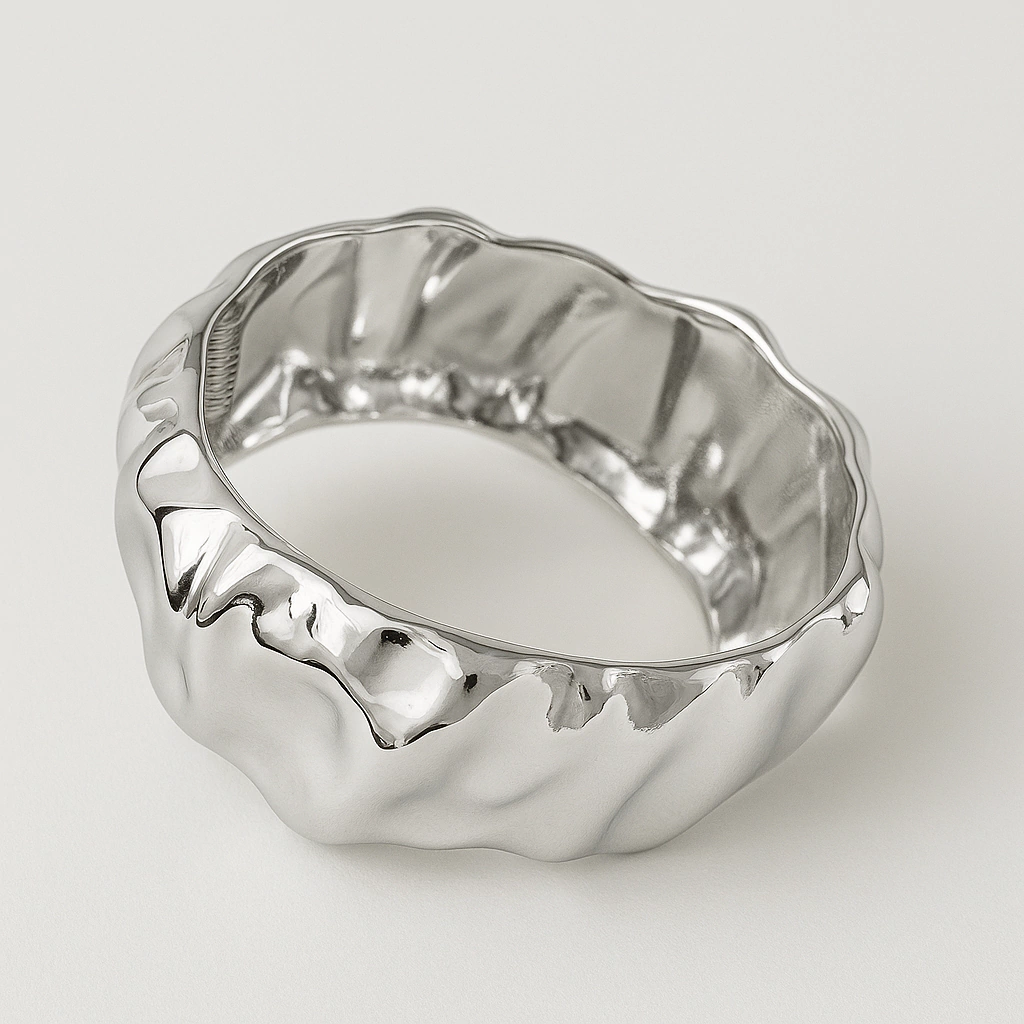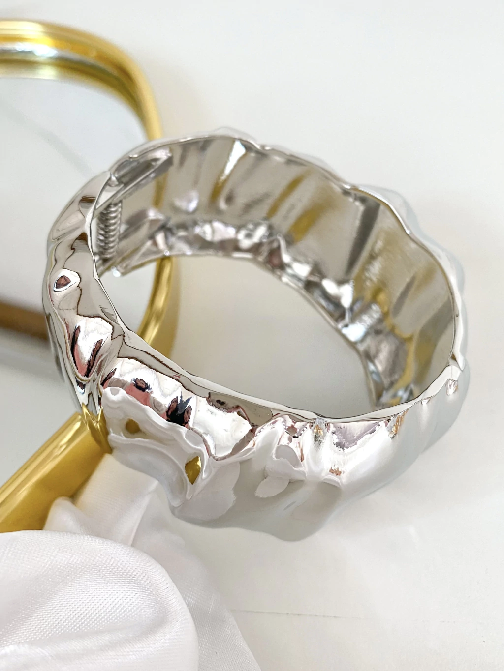 PU91304 - BRACELETE GROSSO MARTELADO - FOLHEADO A PRATA 925