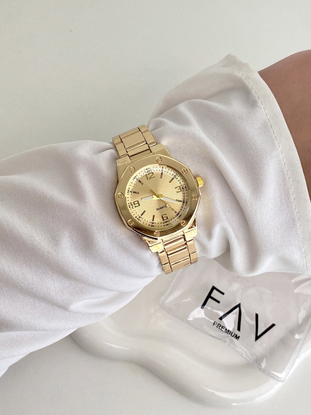 RLG9197 - MODELO 25 - RELÓGIO OCTÓGONO - FOLHEADO A OURO
