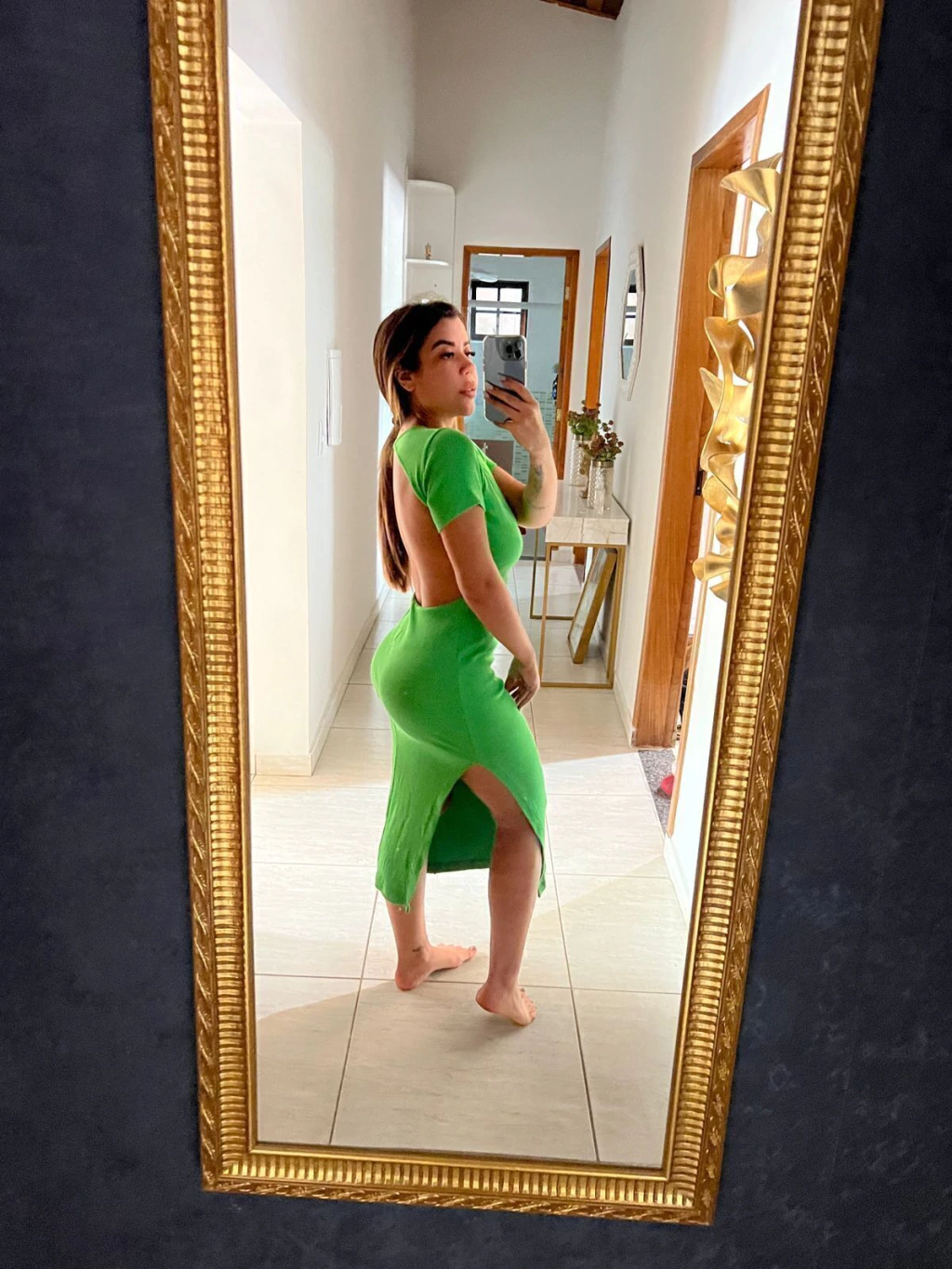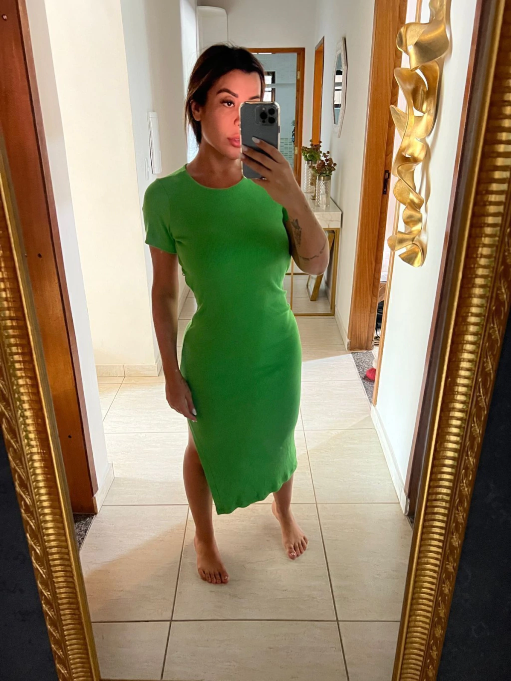Vestido Midi Canelado Verde com abertira nas costas - Tam Unico